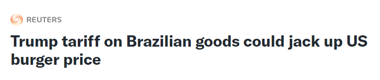 另据报道,不止牛肉,有贸易商和专家表示,如果美国政府坚持自8月1日起对从巴西进口的所有商品征收50%关税,产自巴西的咖啡和橙汁等食品价格将大幅上涨。巴西圣保罗商业管理学院政治学教授马克说:“在某种程度上这会对美国经济产生普遍的负面影响。巴西是主要的橙子生产国,我们的橙子在美国被广泛消费,美国人消费大量的橙汁,因此,美国人很快就会感受到价格的最终上涨。”