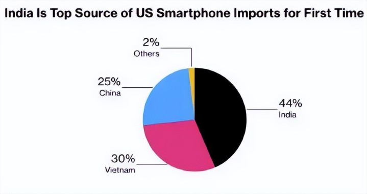 2025年,美国手机市场格局发生了重大变化。“印度制造”的苹果在美国市场销量大增240%,占比从去年同期的13%跃升至44%;越南制造的苹果也占到了30%;而“中国制造”的苹果占比则从去年同期的61%降至25%,下滑了41%。这一数据变化,似乎宣告着“印度制造”成功逆袭“中国制造”。